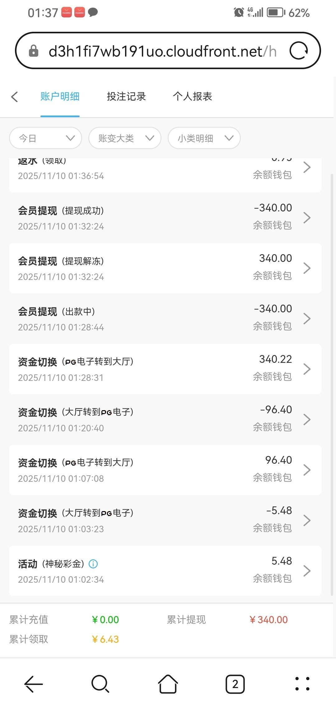 注册了一两天接到电话送了5块多彩金,女王5分钟不到拉到340,提现秒到,彩金是直接到账户的,没去找客服 官网 931.com