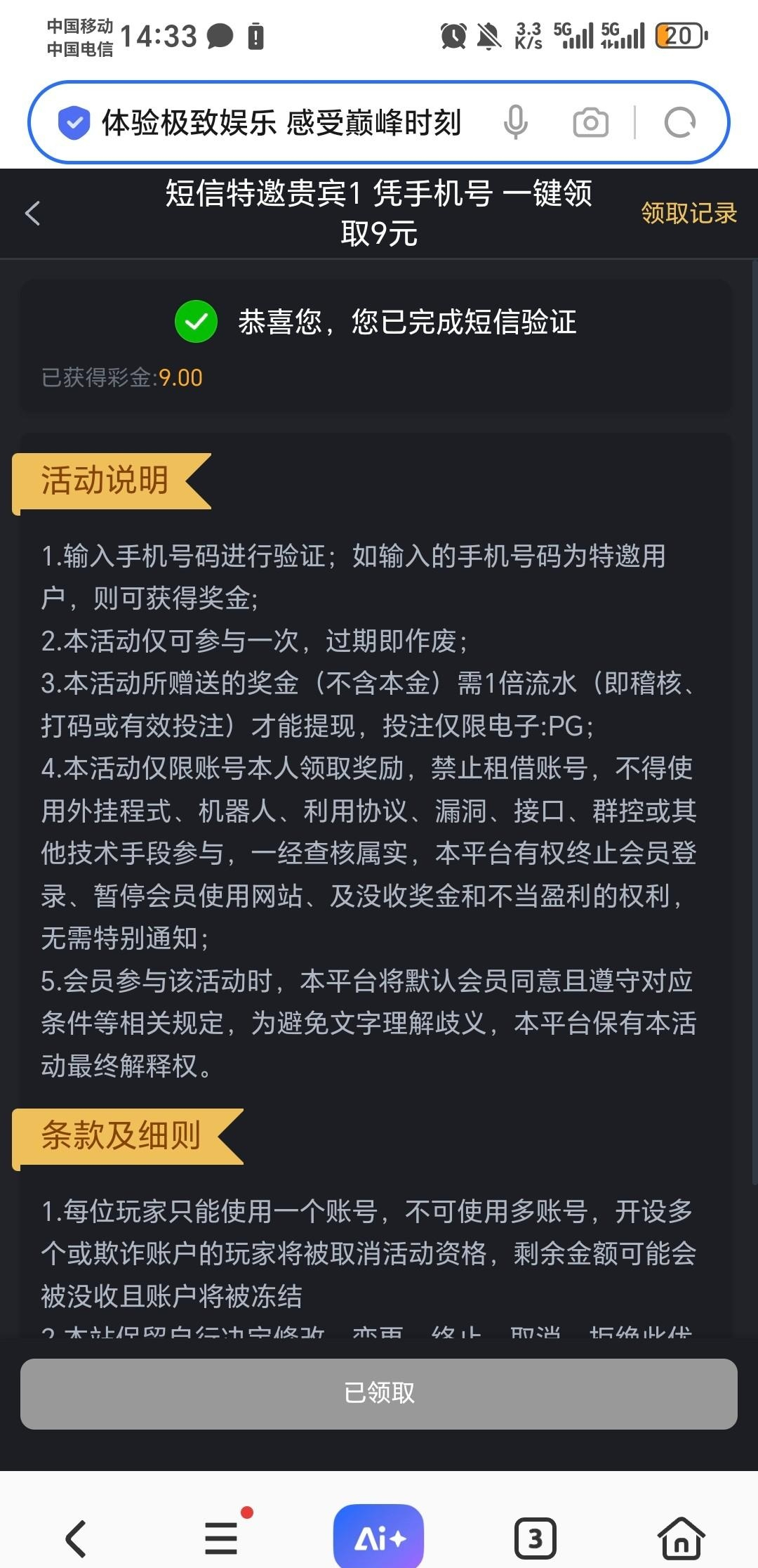 白嫖彩金