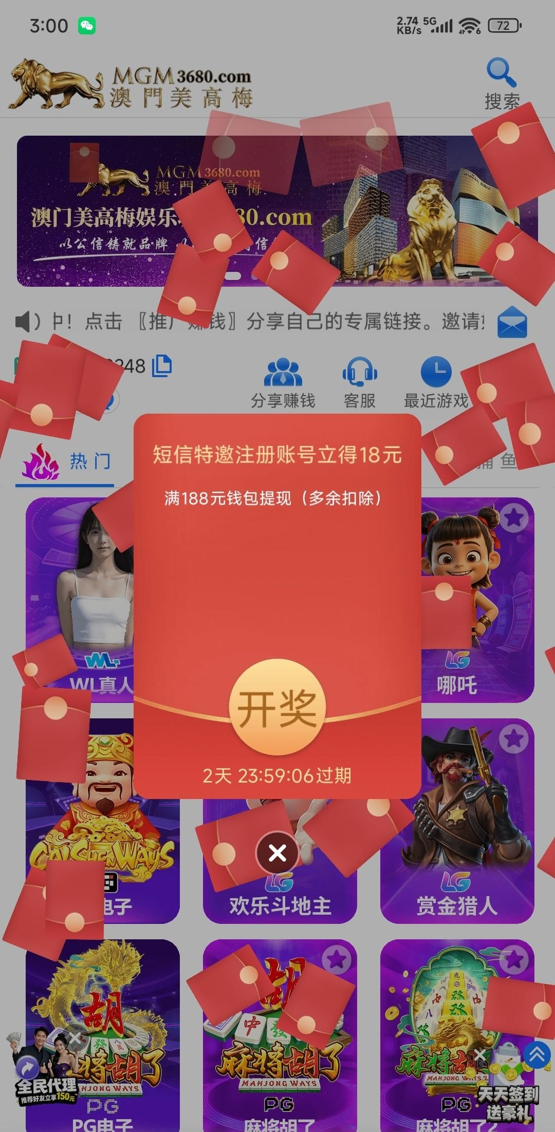 注册彩金18按要求发了短信过去然后找了客服 登记完返回来就弹红包出来了 短信链接HTTP://154.195.198.7 官网3680.com
