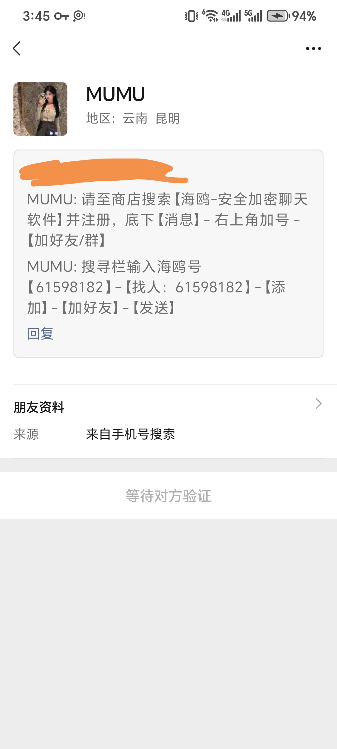 领取步骤,先微信加13293484400,她不会通过好友会回复你下载海鸥,海鸥联系方式在图里,会要你提供微信号和微信名称,不知道具体查没查,可以碰瓷试试。