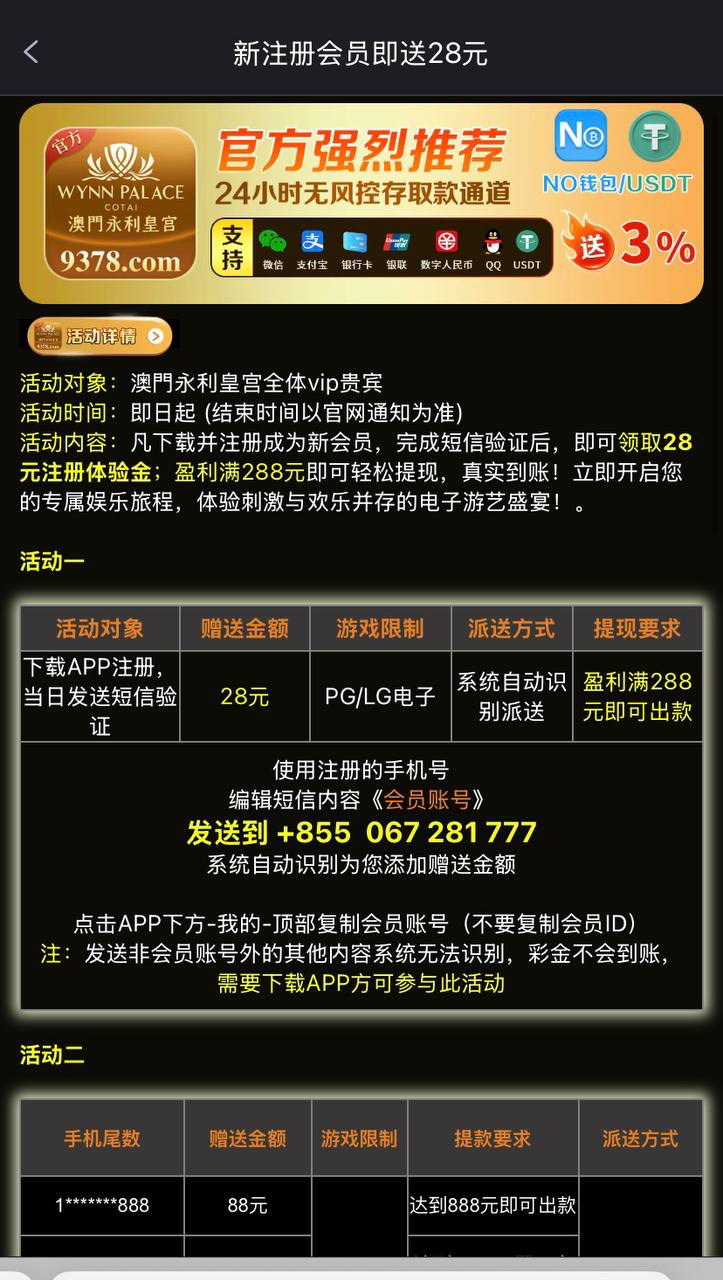 永利皇宫送28 发短信验证彩金,一般都是几分钟就到了