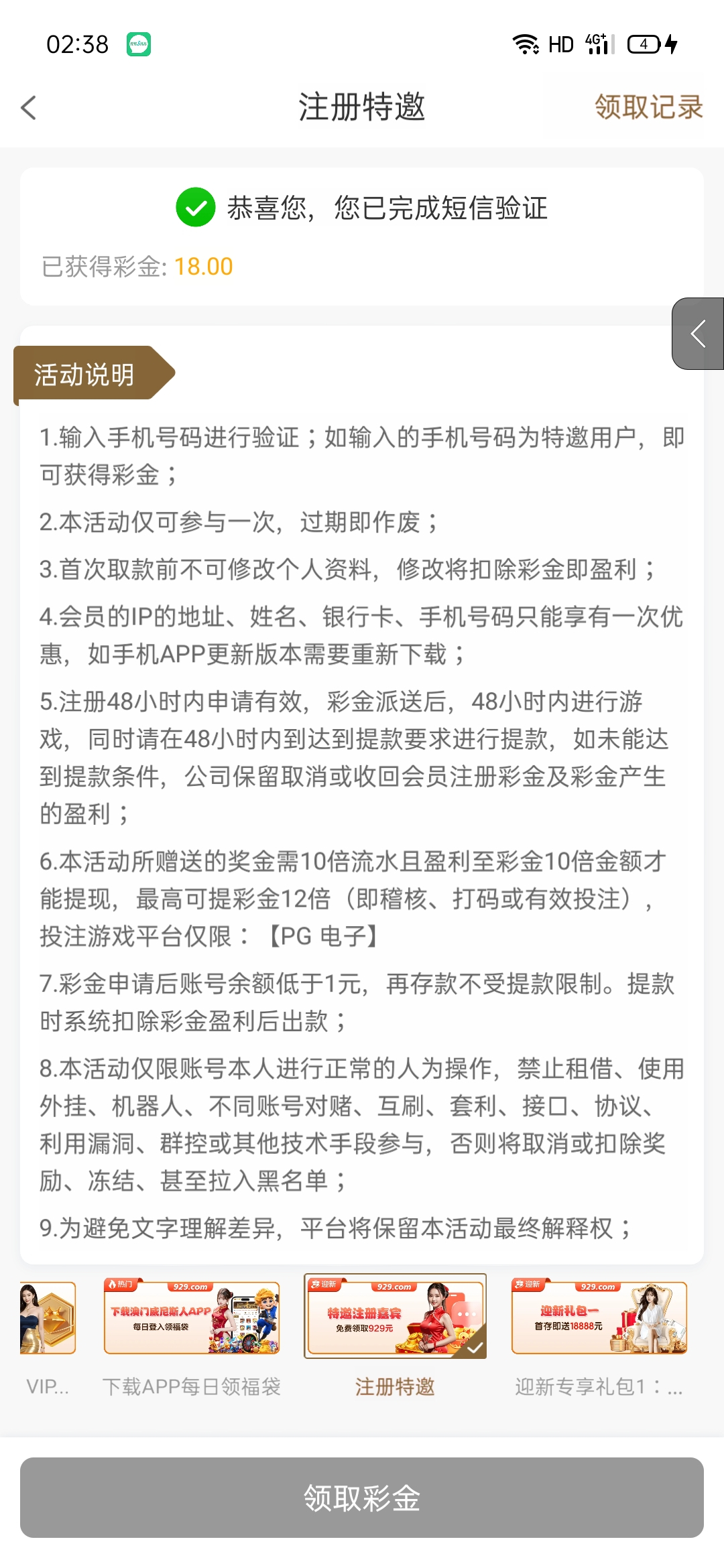 白嫖彩金