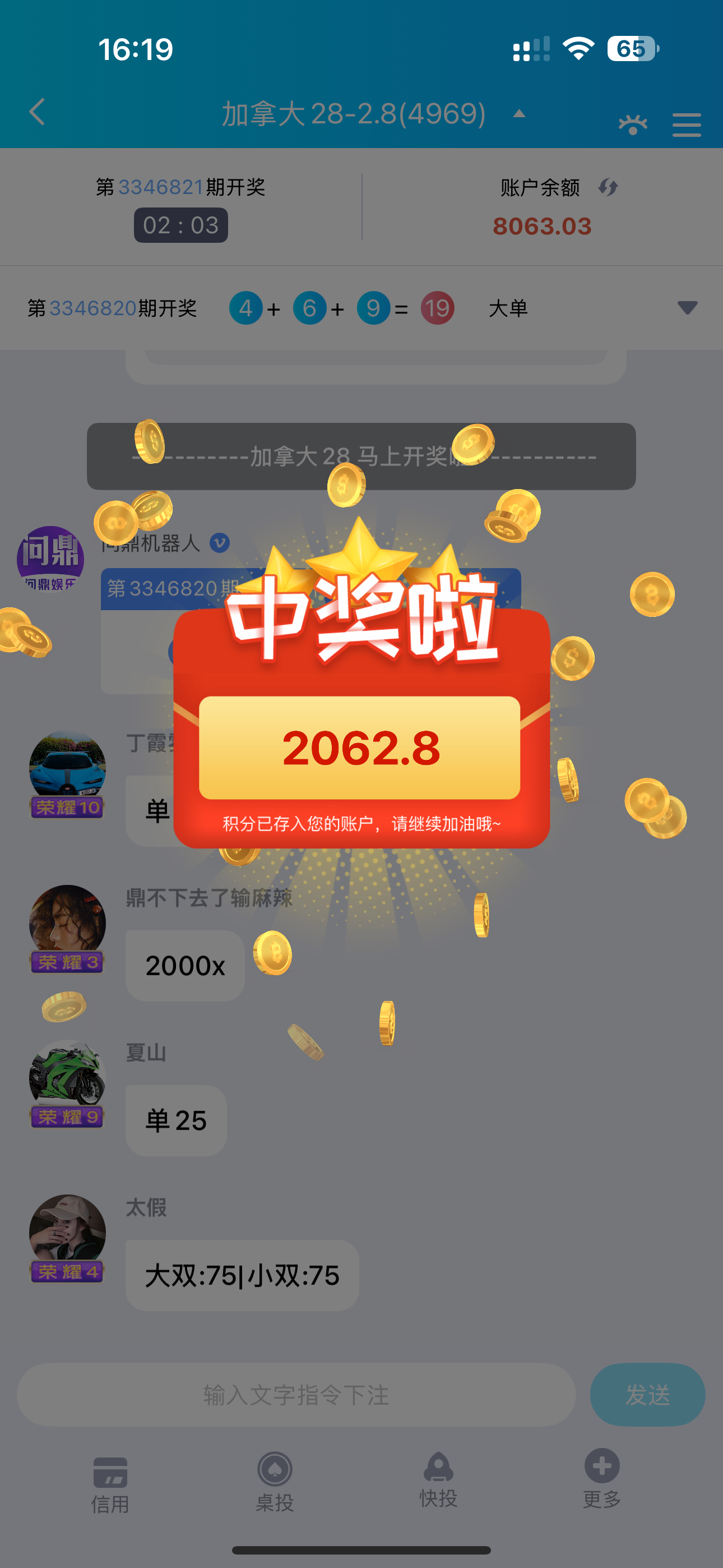 壹号吃肉了,8块反水打上700