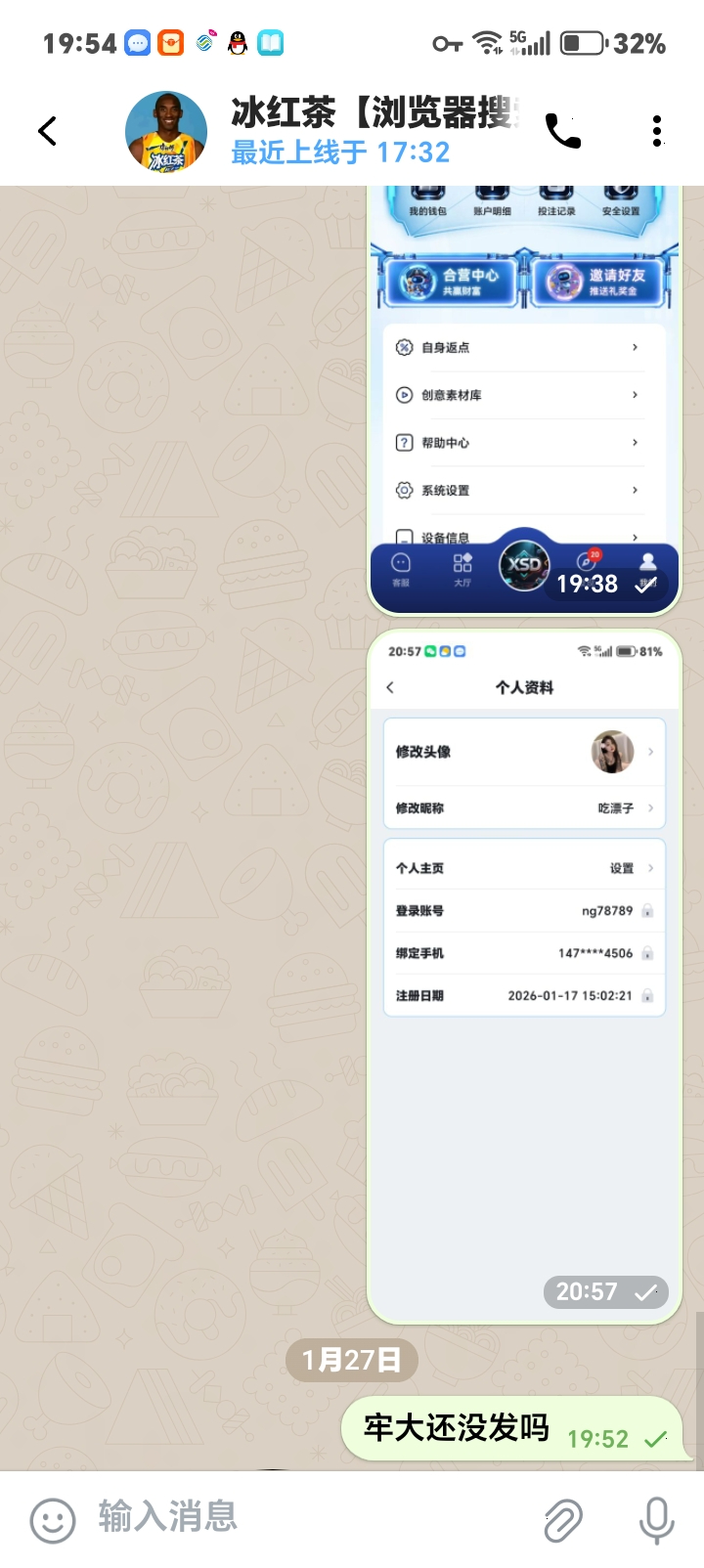 jia1997 在吗我中了矿泉水现金,给你发消息了,冰红茶麻烦回一下