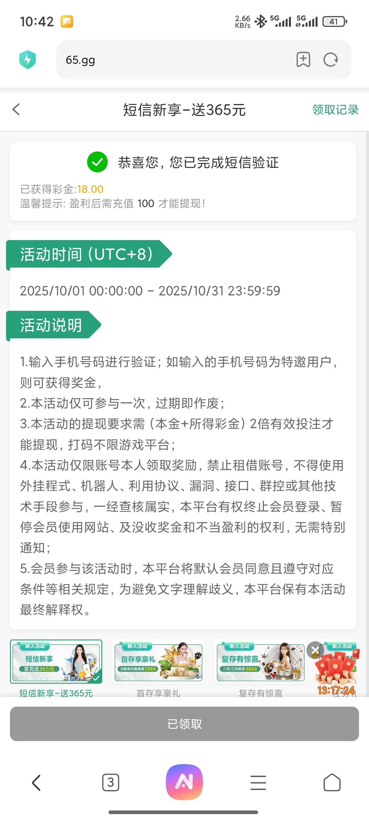 白嫖彩金