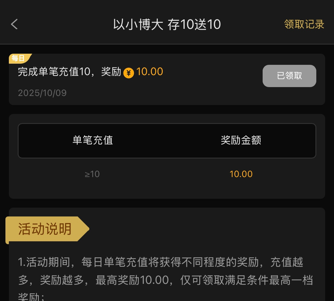 每天都有10+10感兴趣的可以去试试100就可以提了限制pg/wg
