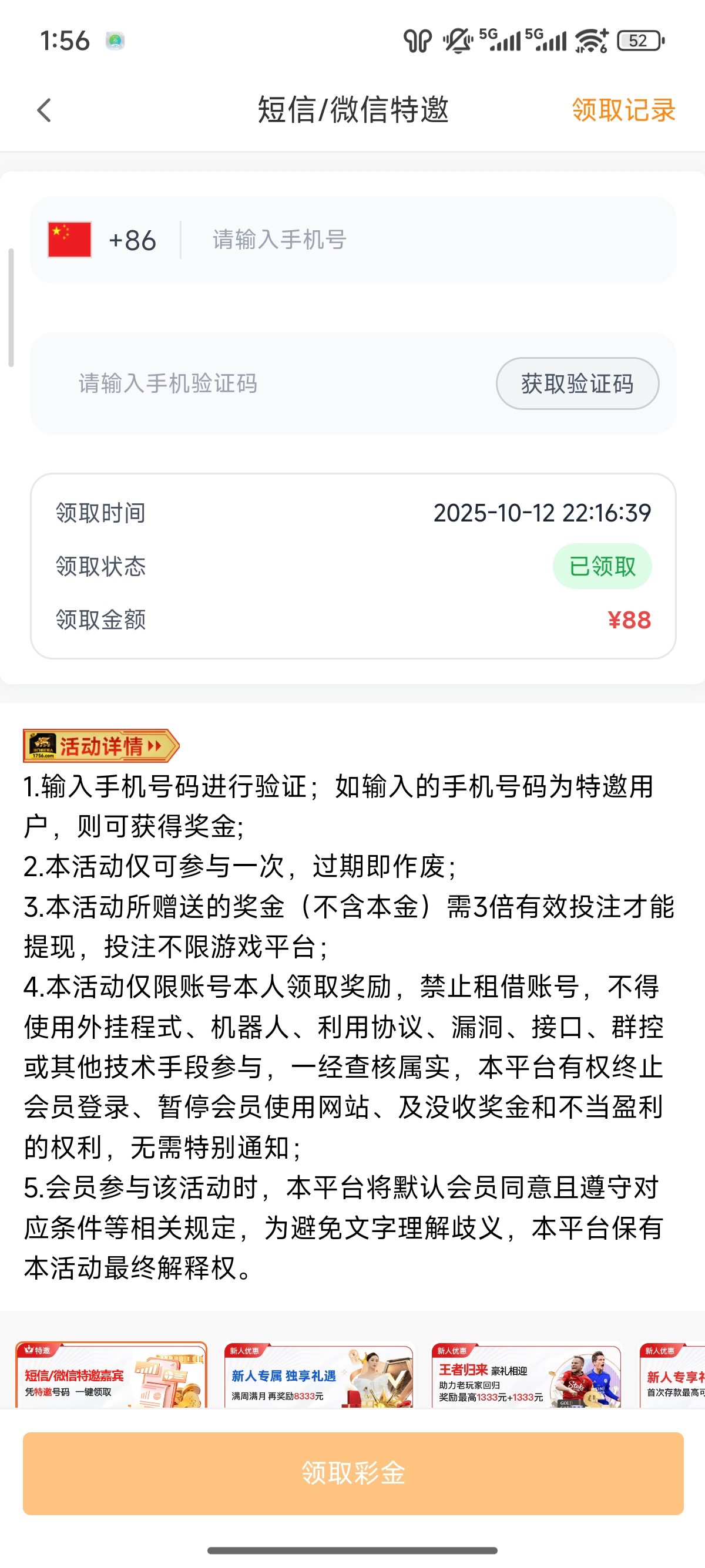 白嫖彩金