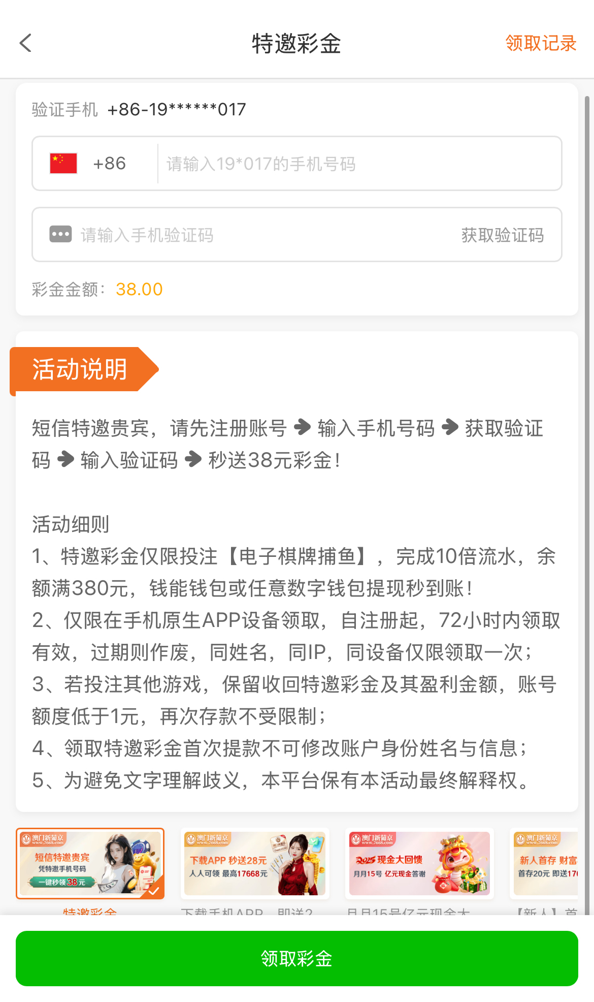 白嫖彩金