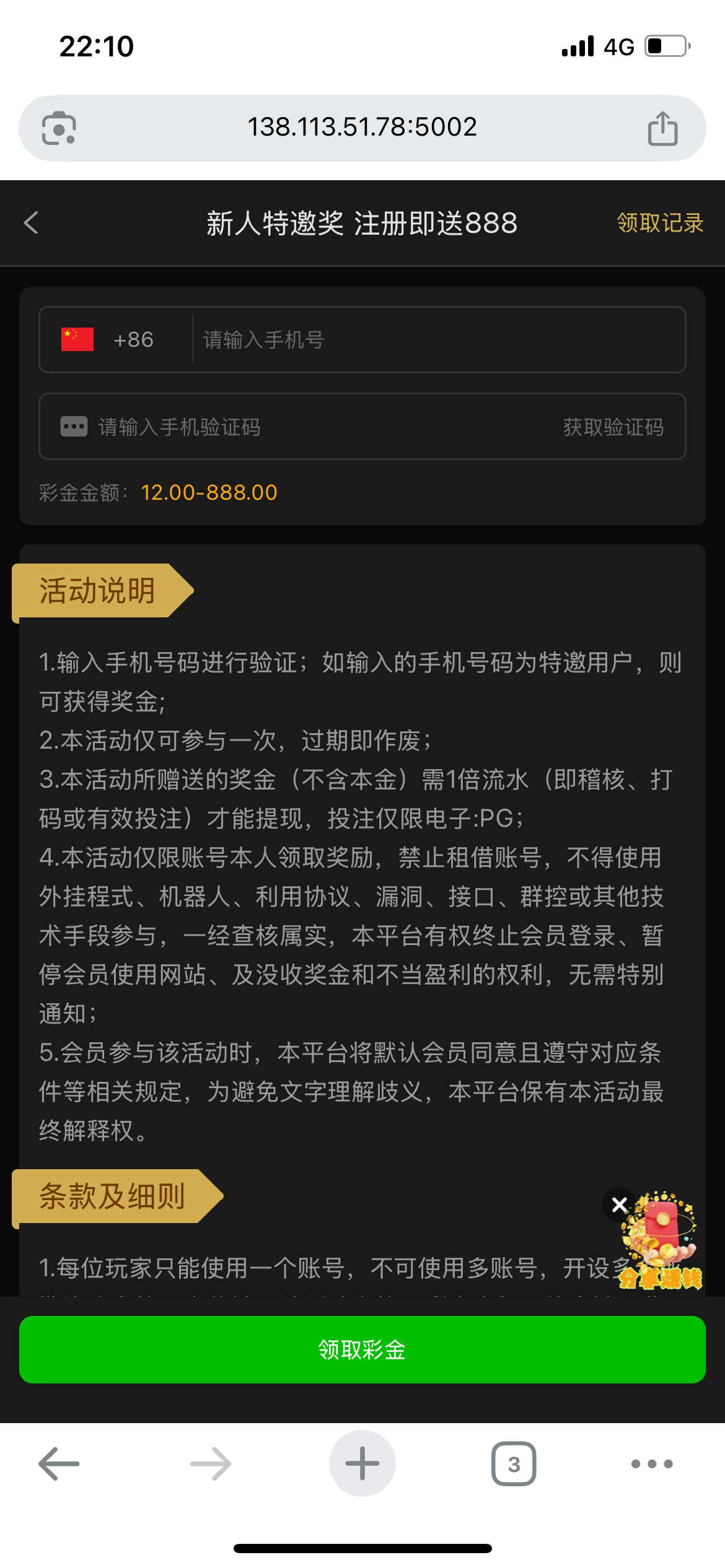 白嫖彩金