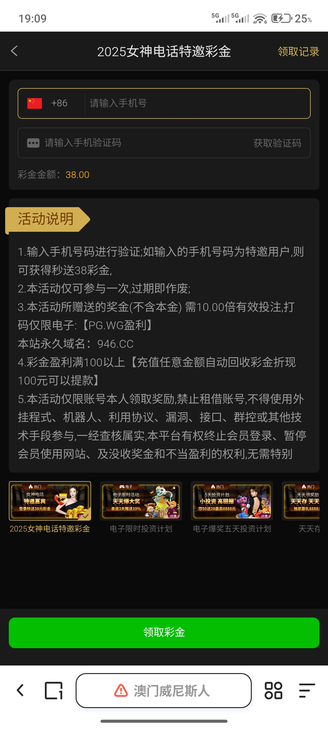 白嫖彩金
