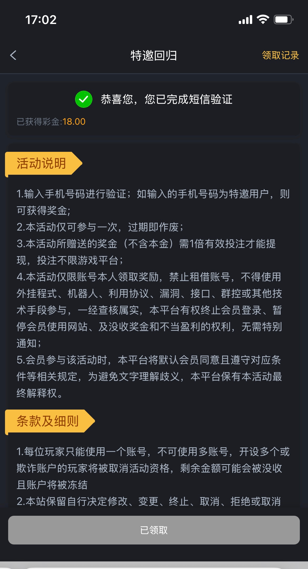 白嫖彩金