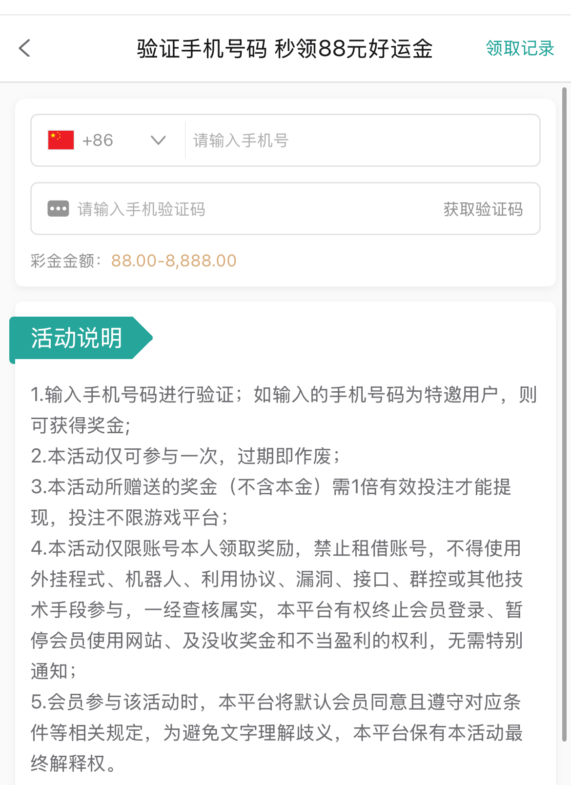 白嫖彩金