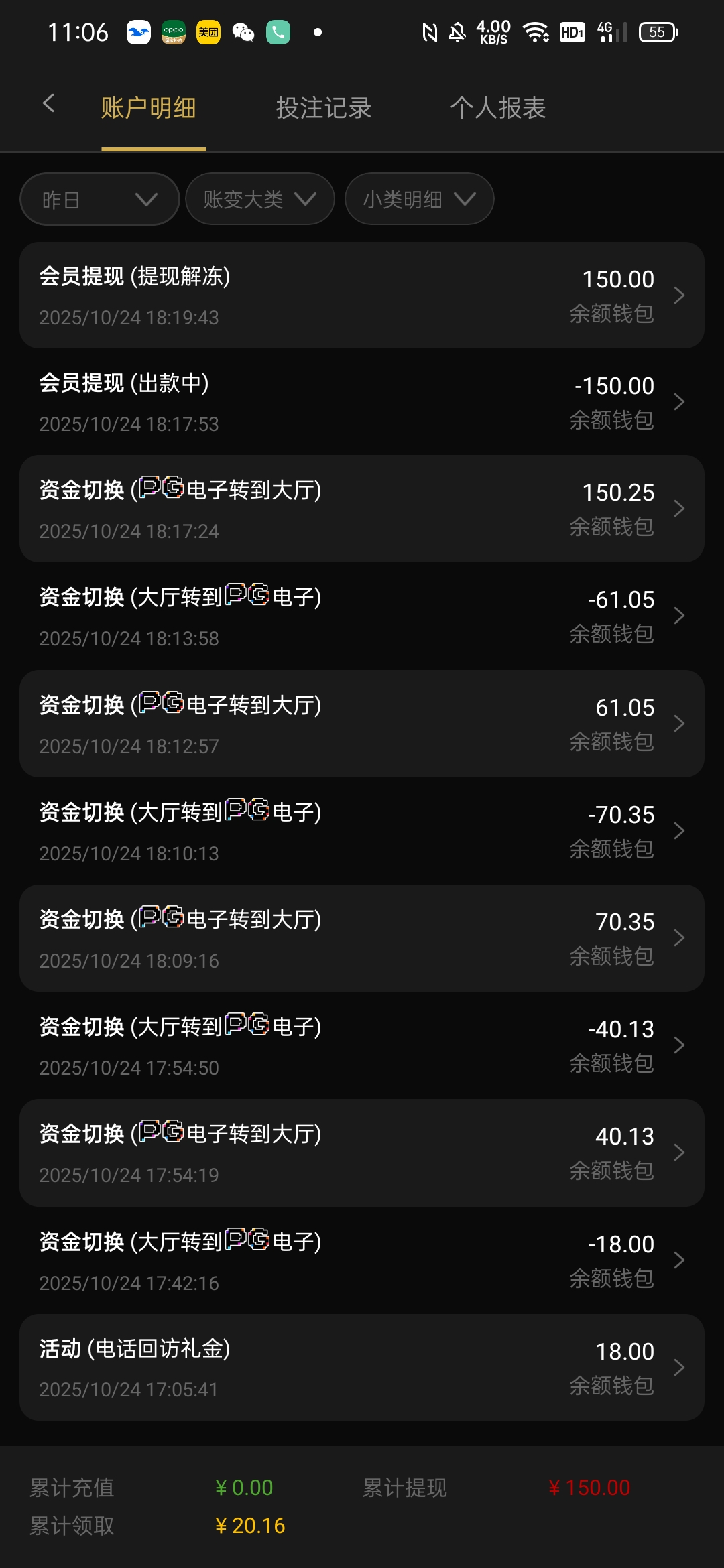 电话特邀送了18彩金下了150
