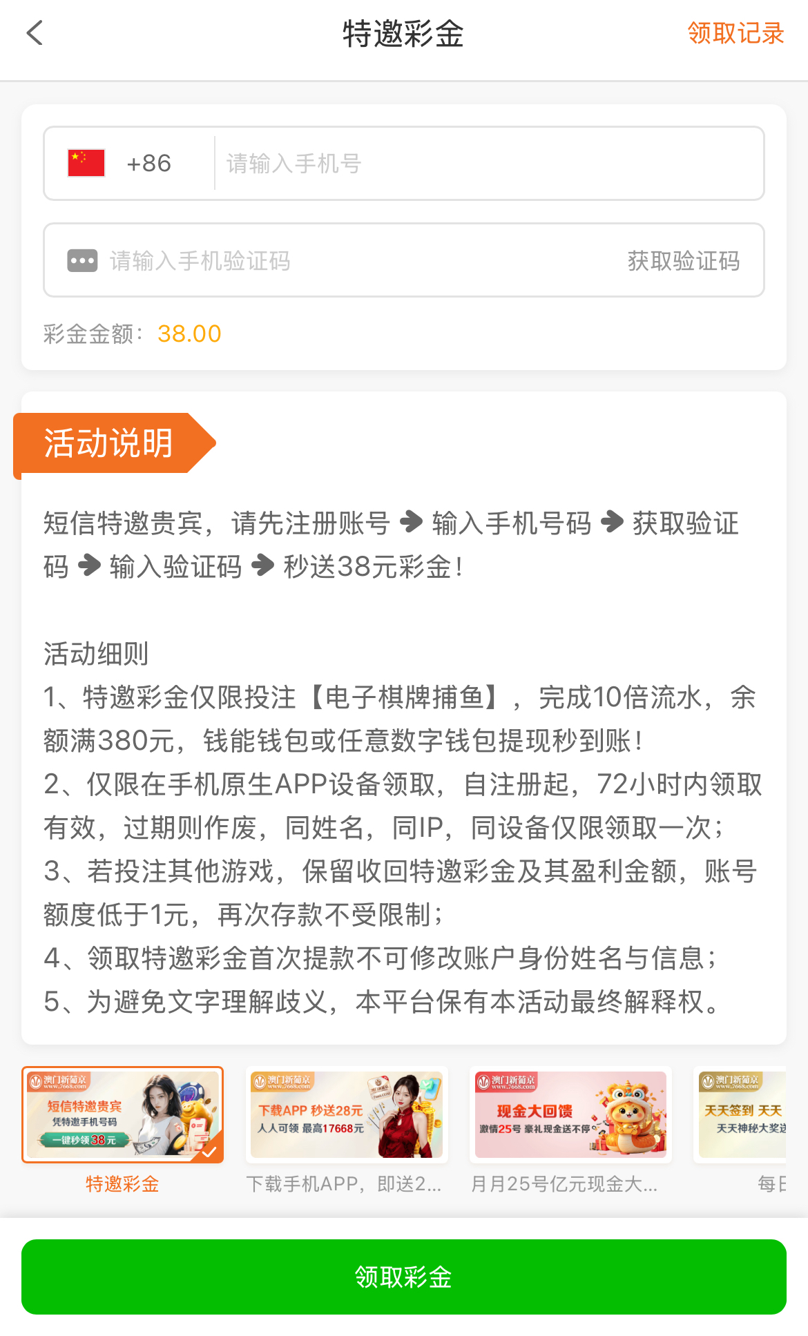 白嫖彩金